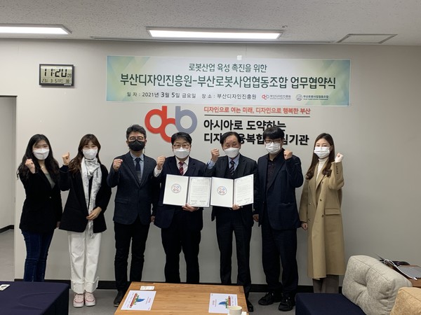 부산디자인진흥원과 부산로봇사업협동조합이 로봇사업 육성 촉진 협력 협약을 체결했다.