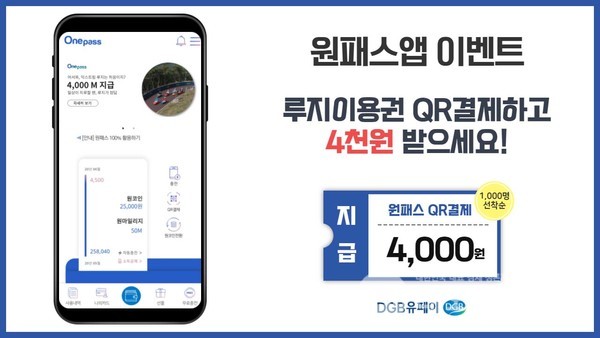 DGB유페이 관계자는 “레저 영역으로 확장된 원패스의 간편결제를 홍보하기 위해 협업하는 본 이벤트에 원패스 고객들의 많은 관심과 이용을 바란다”면서 “지급받은 마일리지로는 루지 이용권을 재결제하거나 대중교통, 택시, 편의점 등 다양한 원패스 결제가능 사용처에서 이용할 수 있다”고 설명했다.