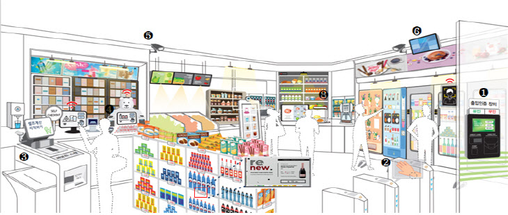 스마트슈퍼는 동네슈퍼에 출입인증장치, 무인계산대 등 사람 없이 점포를 운영하는데 필요한 기술과 장비를 도입한 점포다.