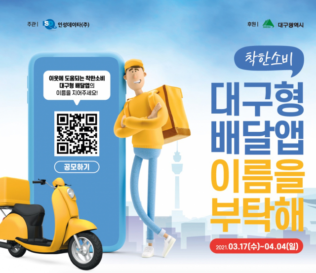 지난 3월 17일부터 4월 4일까지 열린 대구형 배달앱 이름 공모전에는 1만 2157건의 아이디어가 접수됐고, 인성데이타는 접수된 이름 중 활용성, 창의성, 명료성, 스토리 등을 평가 지표로 삼아 기업내부 심사, 전문가 심사 등을 거쳤다.