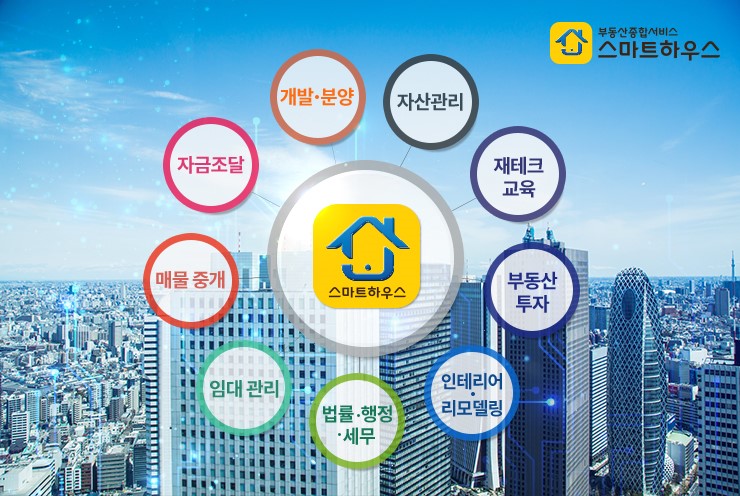 모바일 전용 어플리케이션을 통해 간편하게 부동산 임대관리가 가능한 스마트하우스는 임대관리 서비스가 특화된 일본의 플랫폼 사업을 런치마킹 해 2015년부터 베타서비스를 시작해 5년 동안 전국 1095개의 지점망을 구축했다.