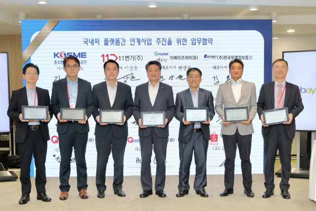 중소벤처기업부와 중소벤처기업진흥공단이 서울 스퀘어 11번가에서 ‘국내외 플랫폼 간 연계사업’ 협약식을 진행했다.