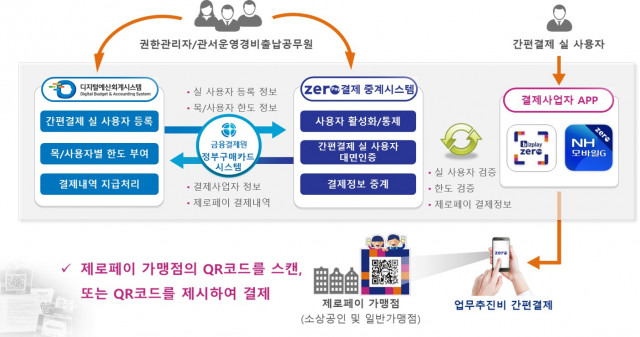 QR코드 기반의 간편결제 서비스인 정부관서운영경비용 간편결제는 관서 소속 공무원이 업무추진비를 제로페이로 결제하면, 출납관서의 계좌에서 가맹점으로 이체된다.
