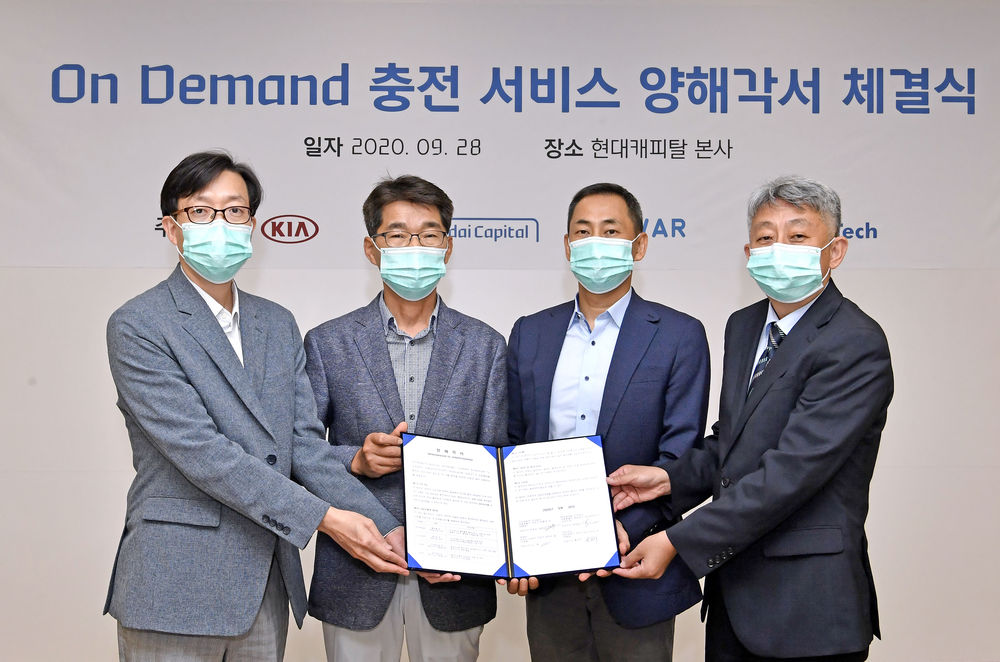 기아자동차가 현대캐피탈, 에바(EVAR)와 함께 전기자동차 온디맨드(On-Demand) 충전 서비스를 위한 양해각서(MoU)를 체결했다.