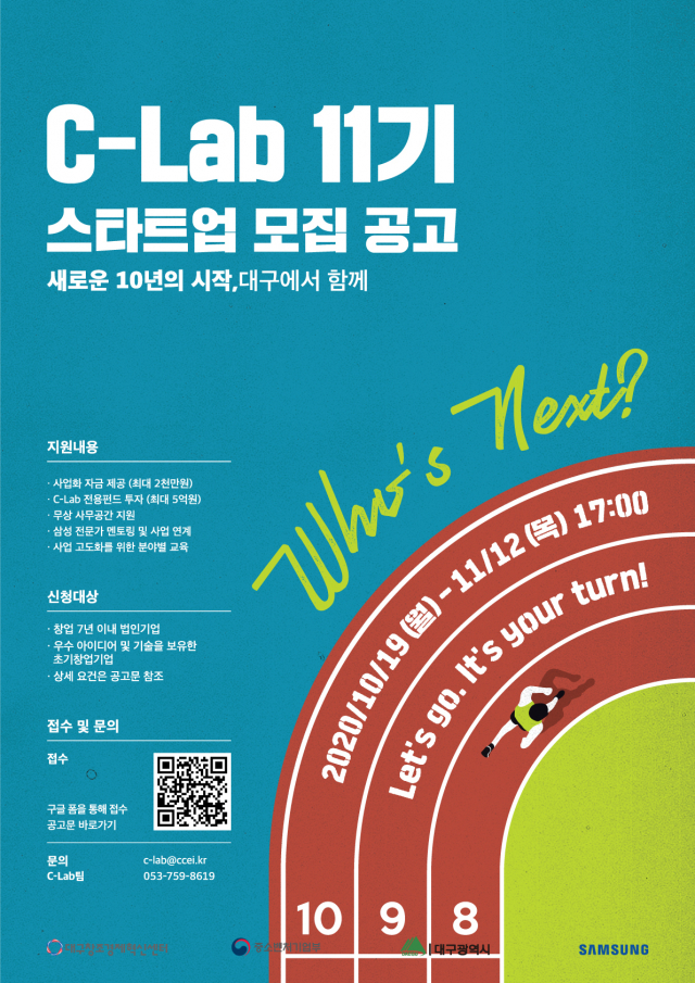 지난 19일부터 내달 12일까지 대구창조경제혁신센터가 C-Lab 엑셀러레이터 11기에 참여할 기업을 모집한다.