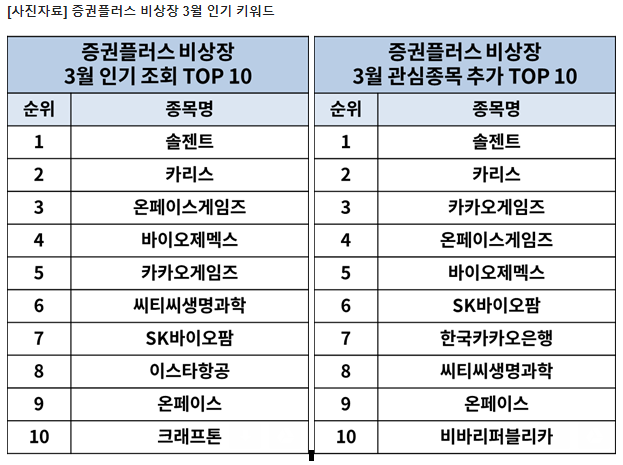 ‘증권플러스 비상장’의 3월 인기 키워드는 ‘바이오‧게임’으로 밝혀졌다.