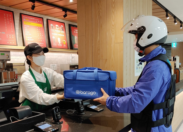 바로고가 스타벅스 커피 배달 서비스를 제공한다.
