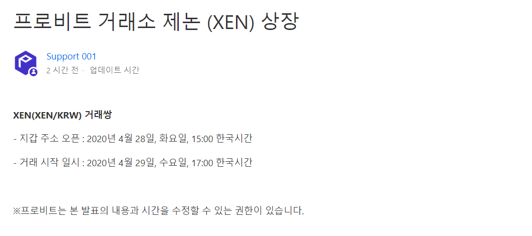 제논(XEN), 프로비트 코리아 원화 상장한다