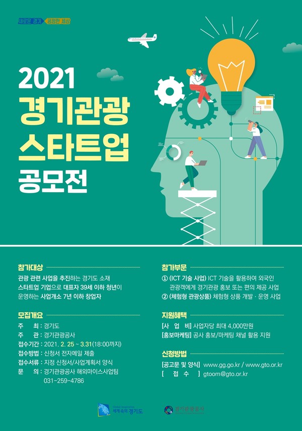 정보통신기술(ICT)기반 서비스, 체험형 관광상품 분야를 공모하며, 외국인 관광객을 대상으로 빅데이터, 채팅봇, 통번역 앱 등 정보통신기술을 호라용해 경기관광을 홍보하거나 한류관광, 비대면 관광지인 경기도 청정계곡을 즐기는 관광 등 체험형 관광 상품 개발과 운영사업을 선발한다.