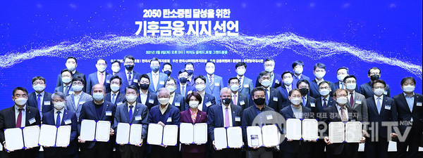 신한금융그룹이 선언한 ‘Zero Carbon Drive'를 추진하면서 2030년까지 자산포트폴리오 탄소배출량을 38.6% 감축하고, 친환경 금융 지원금액을 30조 원까지 확대하는 등 기후변화 관련 재무정보 공개 협의회(Tas Force on Climate-related Financial Disclosure, TCFD)와 같은 글로벌 이니셔티브 기관의 권고안에 적극적으로 대응하는 로드매을 제시했다.